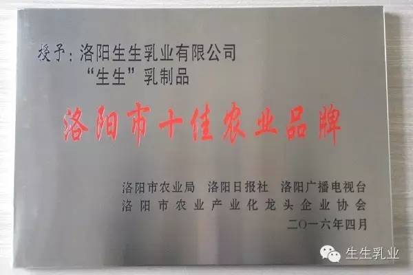 洛陽(yáng)生生乳業(yè)有限公司獲洛陽(yáng)市“百?gòu)?qiáng)農(nóng)企”、“生生”乳制品榮獲“洛陽(yáng)市十佳農(nóng)業(yè)品牌”